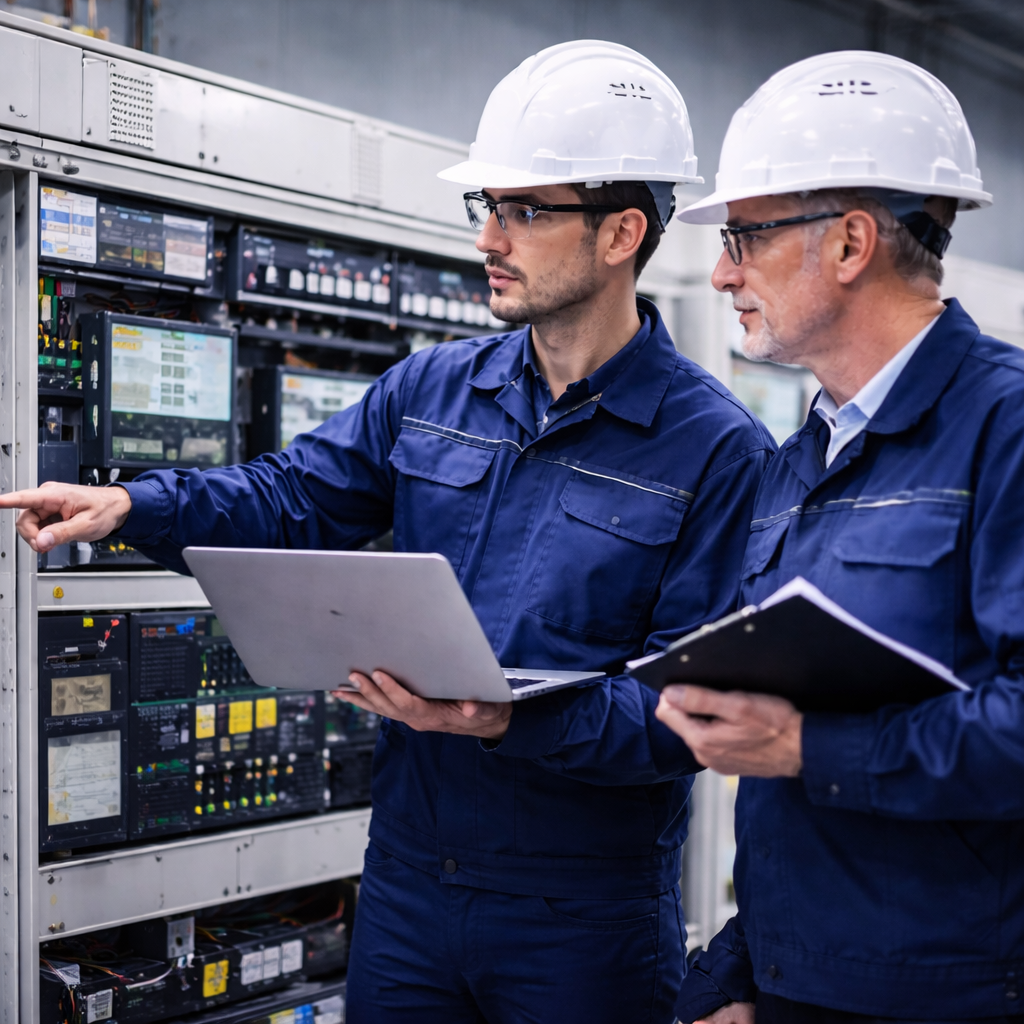 Turbine auxiliaries, boiler feed systems, MCC–PLC–SCADA integration, Solar ACDB–SCADA dashboards, inverter monitoring.